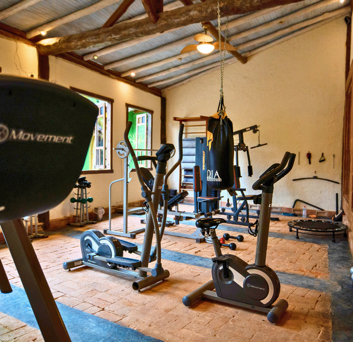 Mesmo longe de casa, você pode manter sua rotina de exercícios em nossa academia completa, ideal para não perder o ritmo enquanto relaxa.